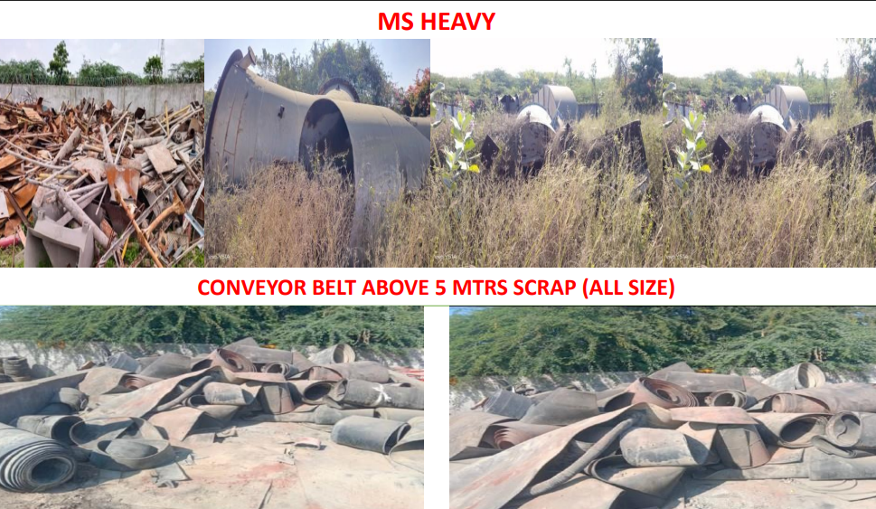 Material Name :- Sale of MS Scrap, GI Scrap, Elect Scrap, High Chrome Steel Scrap, SS Scrap, Conveyor Belt Scrap, Battery Waste & Scrap, Bearing Scrap, Copper Scrap, Plastic, General Garbage, Brass/Bronze/Gun Metal Scrap, Elect Motors, Filter Bags, Rubber_Scrap, Grease waste, Manganese steel, Grinding_Media, Fiber Scrap, At-Ramnagar, Rajasthan