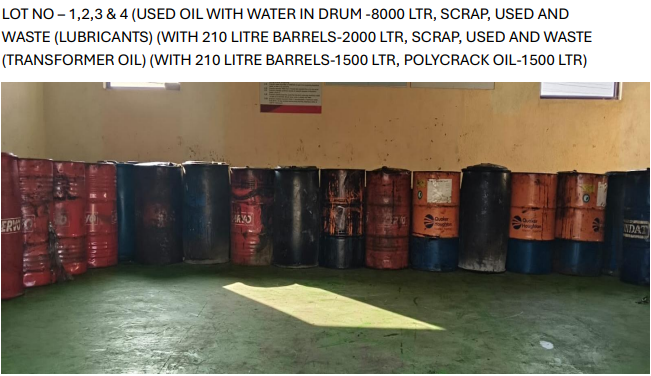 Material Name :- Sale of MS Barrel, Scrap Tyres, SS Scrap, PVC Drums/cans, Plastic, Fire Brick Scrap, Scrap Bags, Elect Motors, Aluminium Scrap, Scrap Elect Machine Items, Plastic Packing Scrap At- Haryana